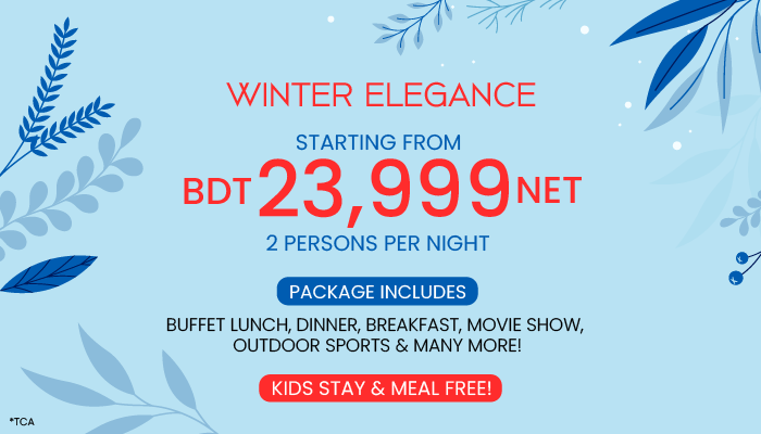 Take advantage of our exclusive Winter Package starting at BDT 23,999 NET for two, with KIDS STAY & MEAL FREE!