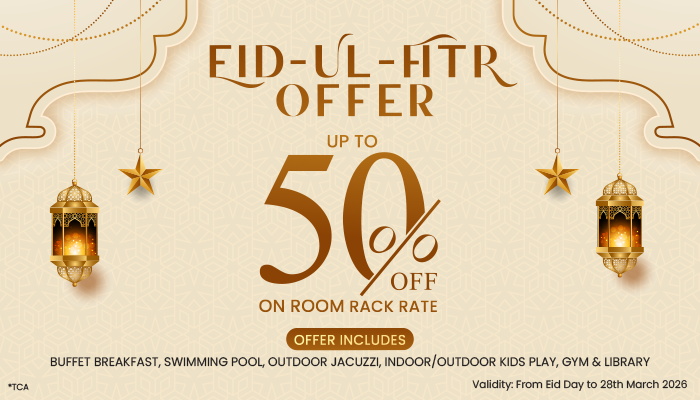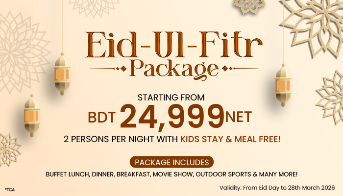 Special exclusive “Eid Package” starts from BDT 24,999 NET for two persons per night with “𝐊𝐈𝐃𝐒 𝐒𝐓𝐀𝐘 & 𝐌𝐄𝐀𝐋 𝐅𝐑𝐄𝐄.”