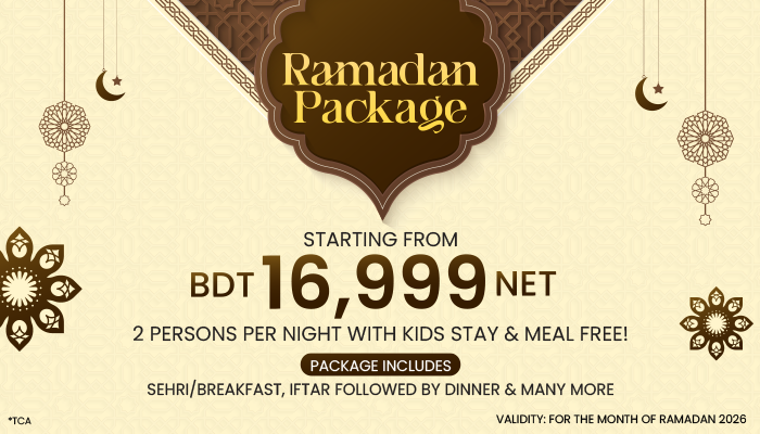 Exclusive “𝐑𝐚𝐦𝐚𝐝𝐚𝐧 𝐏𝐚𝐜𝐤𝐚𝐠𝐞” starts from 𝐁𝐃𝐓 𝟏6,𝟗𝟗𝟗 𝐍𝐄𝐓 for two persons/night with “𝐊𝐈𝐃𝐒 𝐒𝐓𝐀𝐘 & 𝐌𝐄𝐀𝐋 𝐅𝐑𝐄𝐄.”